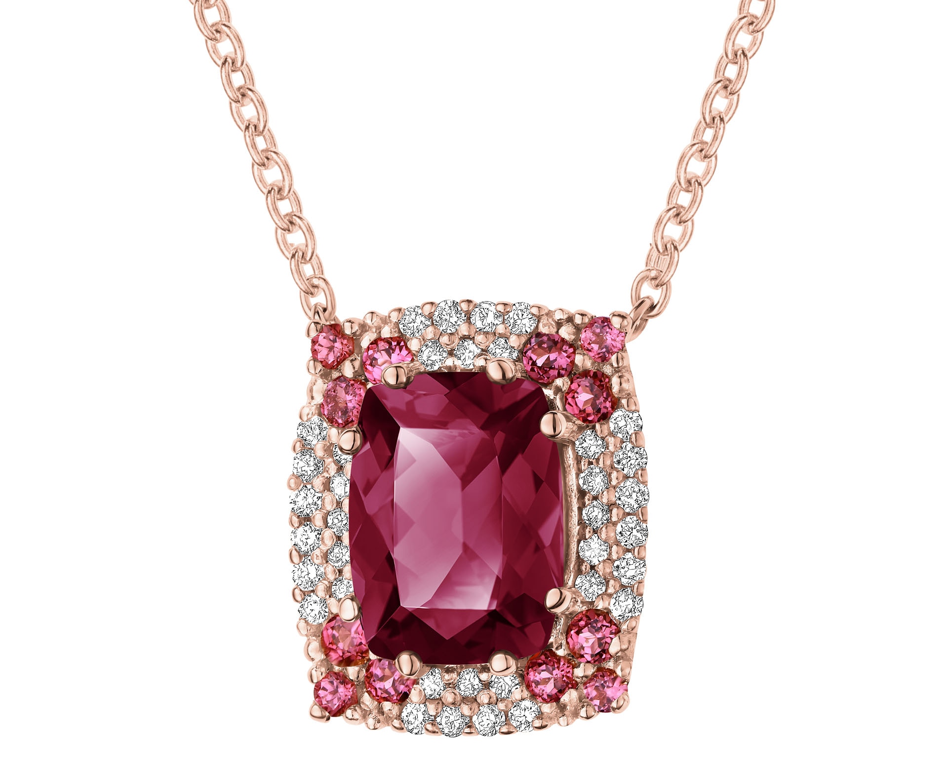 Fotografie nemusí odpovídat skutečným odstínům rodolitů v jednotlivých náhrdelnících.