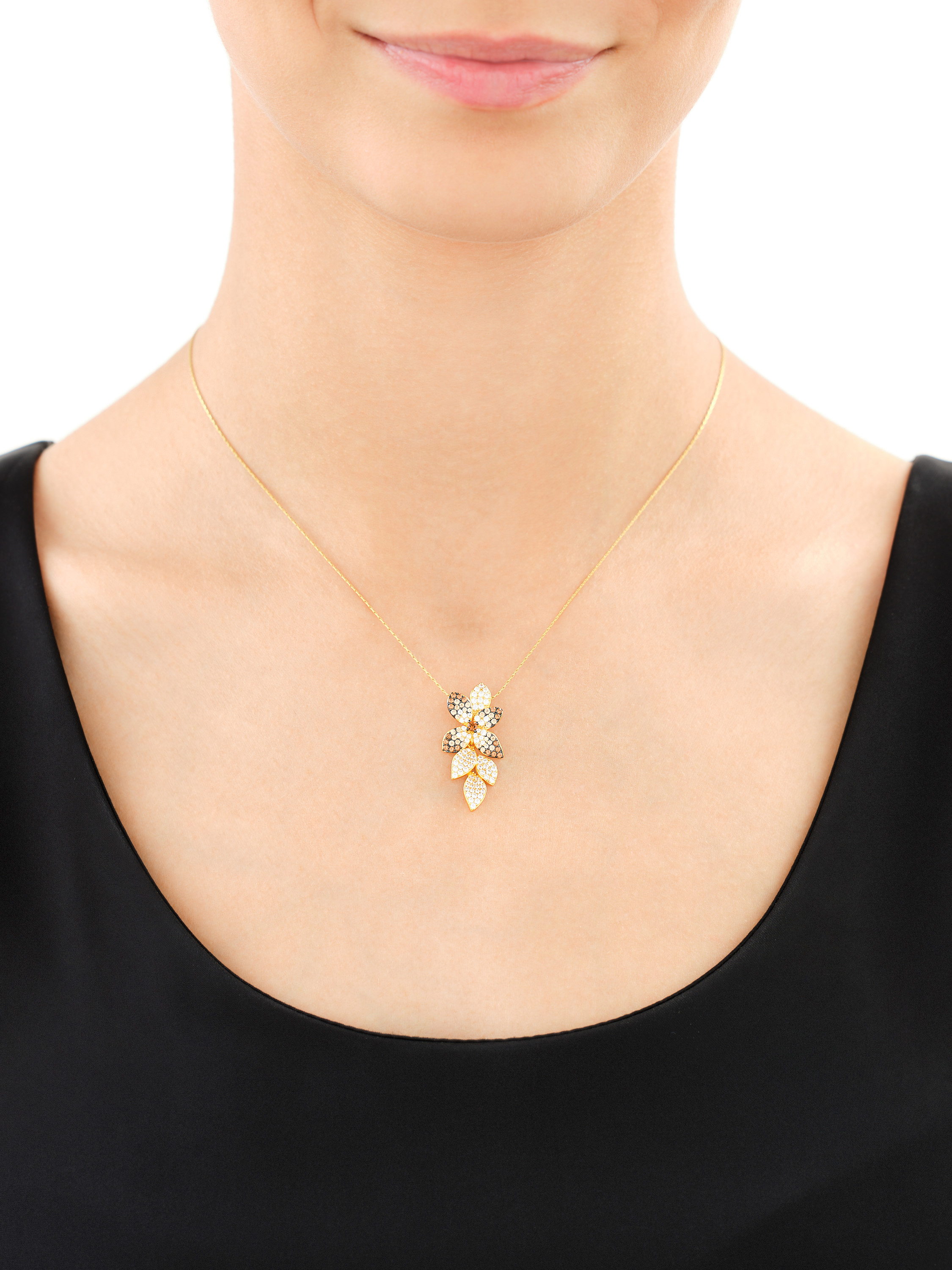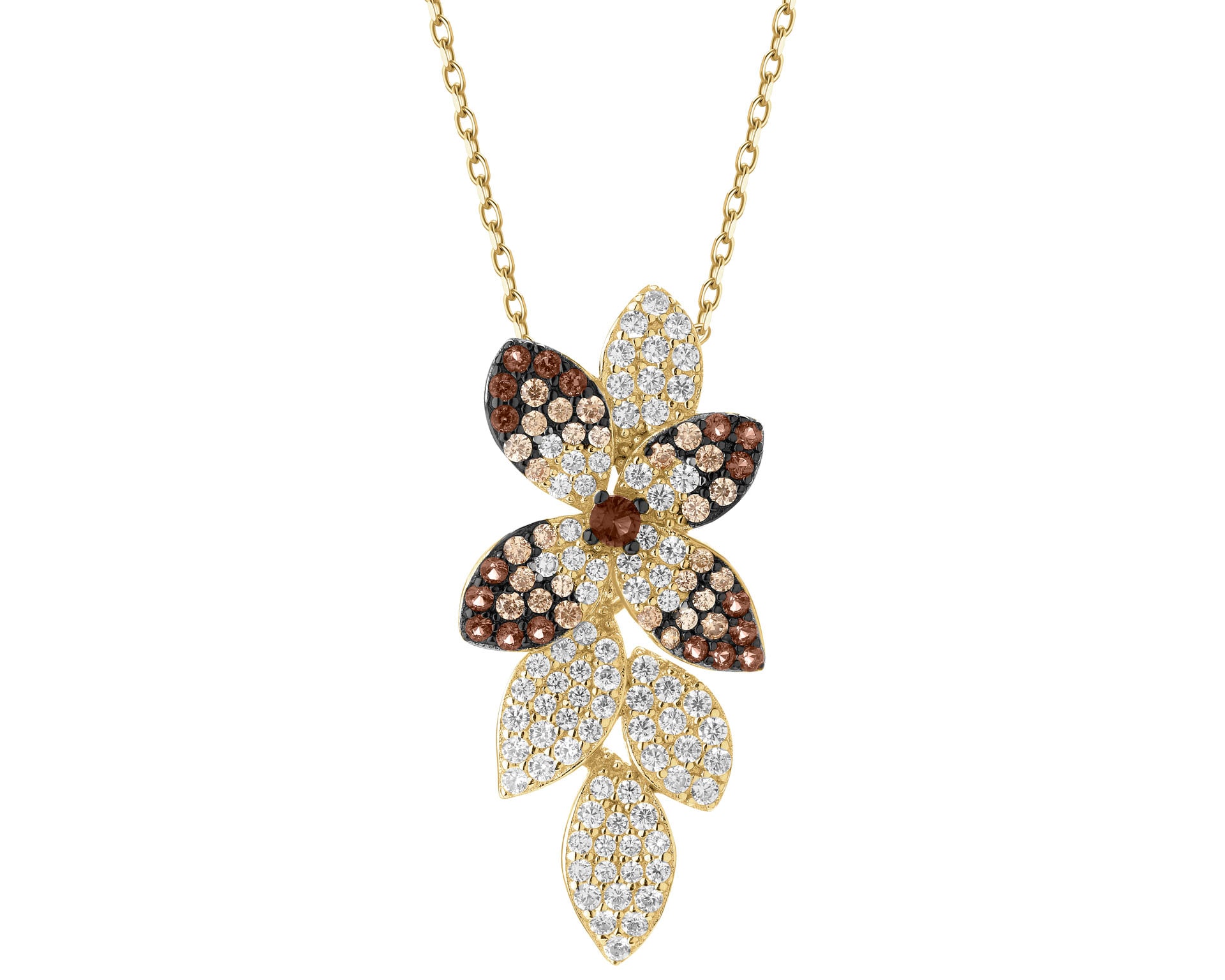 Pozlacený stříbrný přívěsek se zirkony - květy, listy