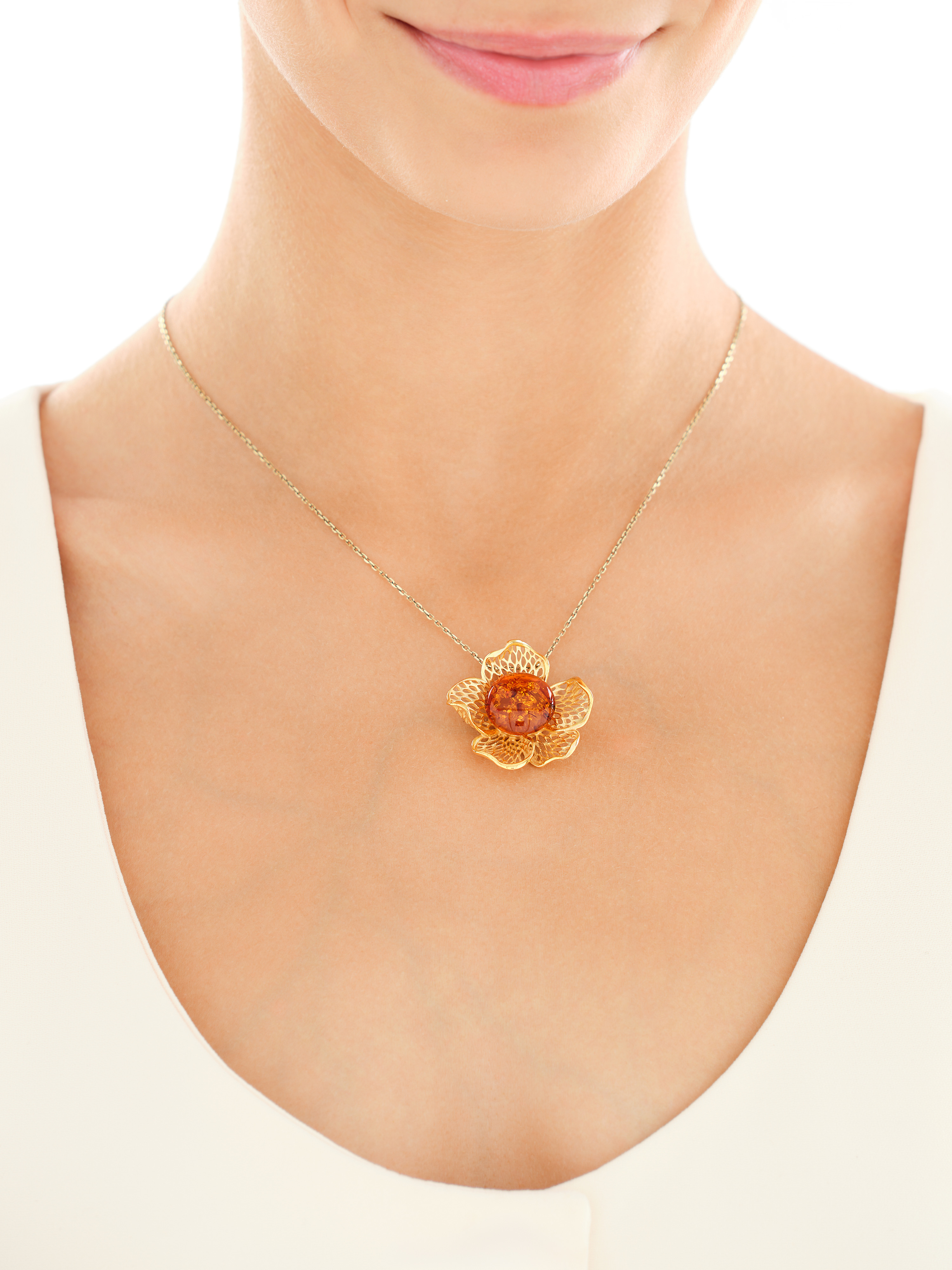 Stříbrné náušnice s jantarem - květy