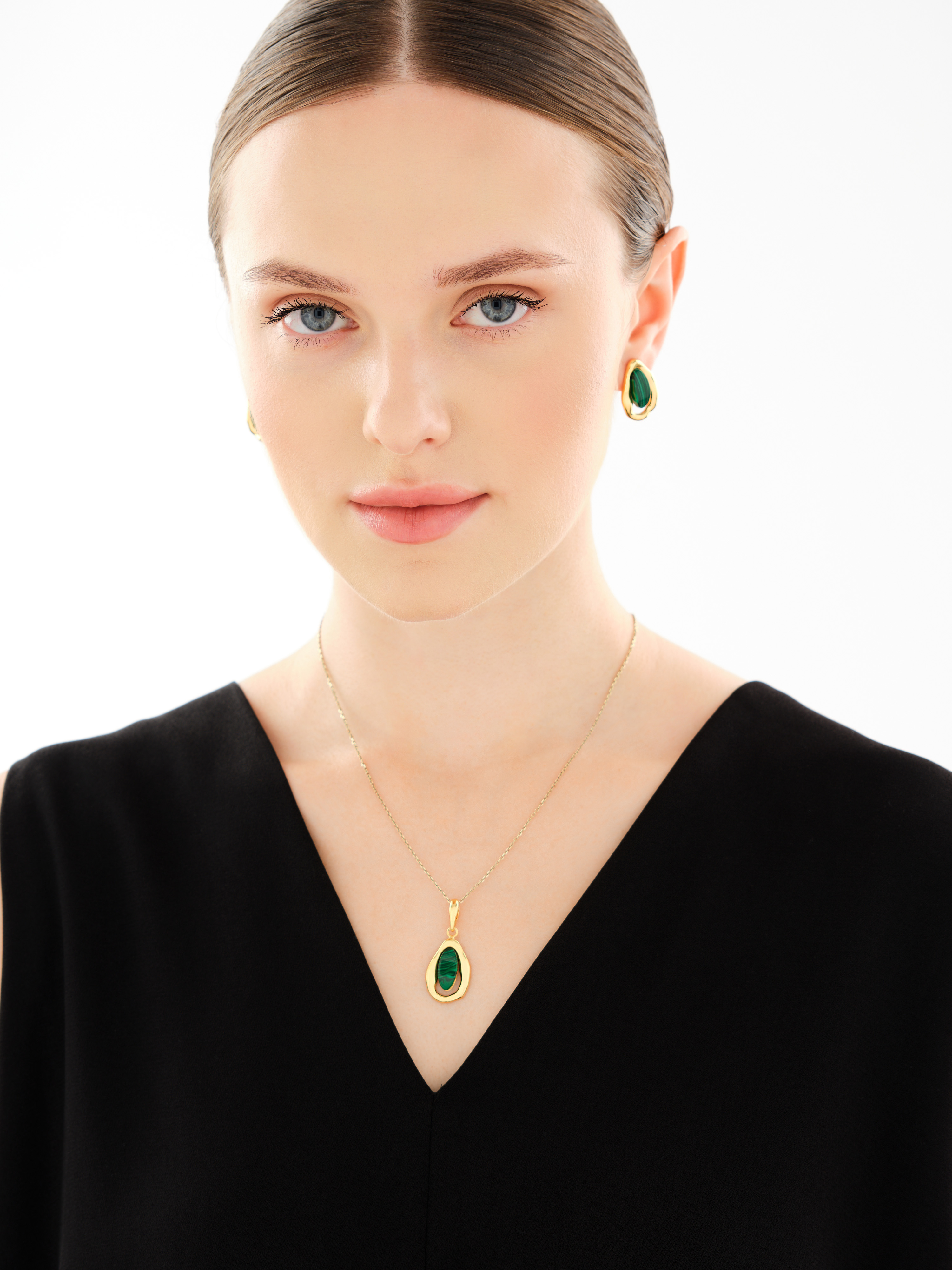 Stříbrné náušnice se syntetickými malachity